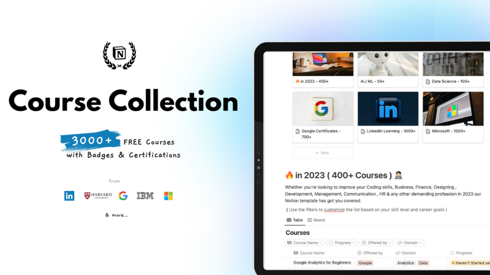 Notion Template Course Collection - 3000+ Courses With FREE Certificates